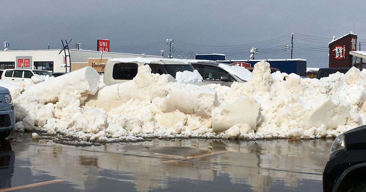 スーパーの駐車場に無断駐車していたと思われる車が雪国ならではの刑を執行されていた 雪は万能兵器 追記しました Togetter