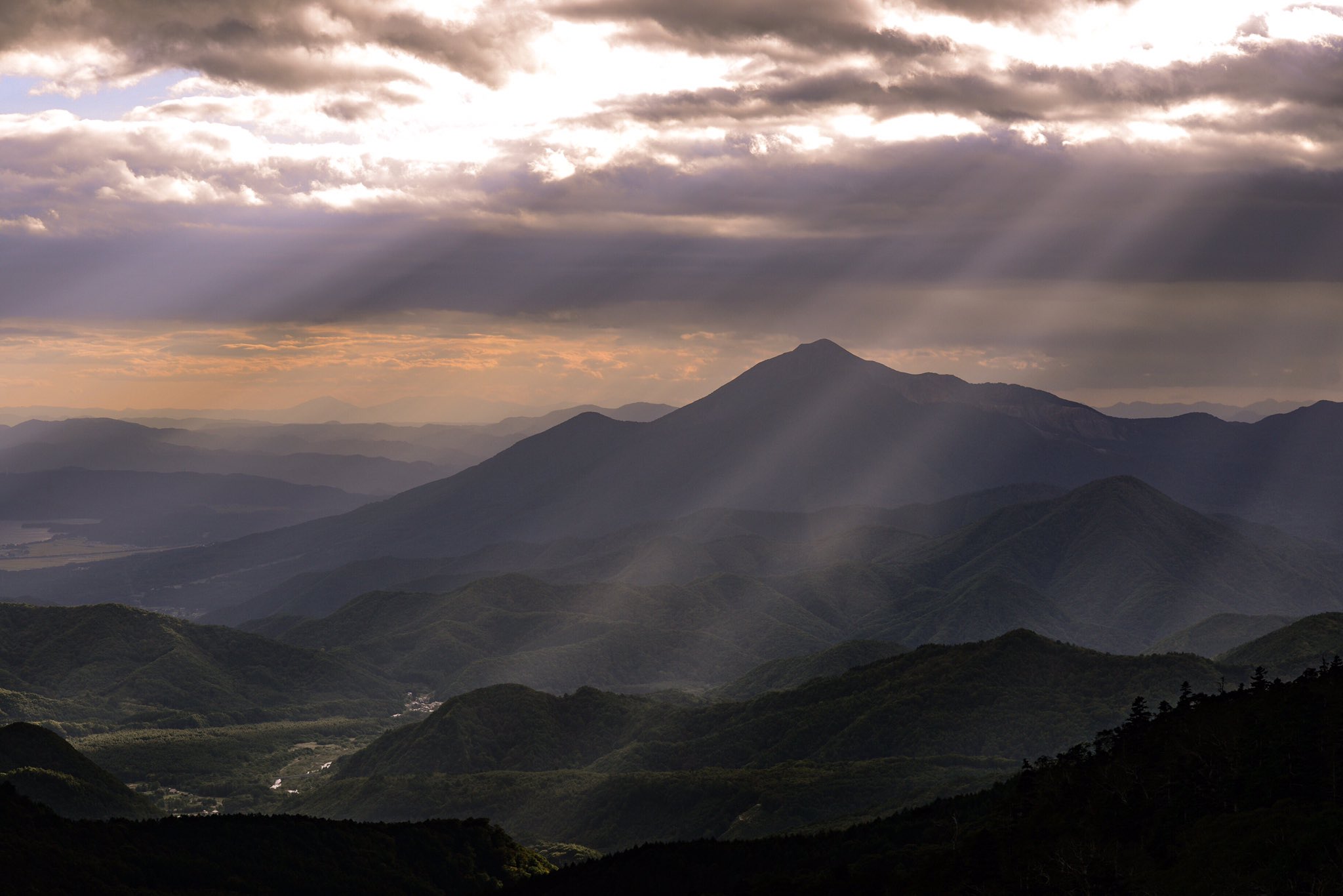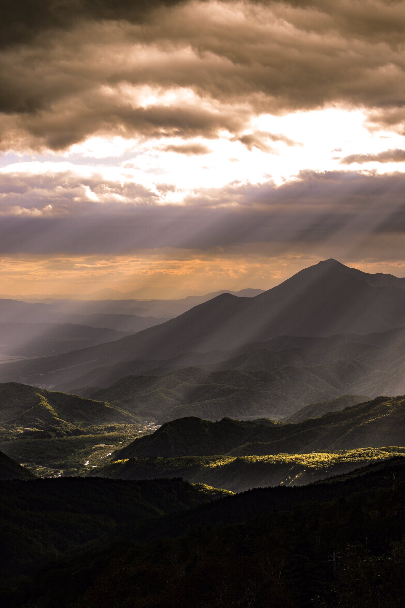 山へ降り注ぐ神秘的な光芒の写真 画像 を無料ダウンロード フリー素材のぱくたそ