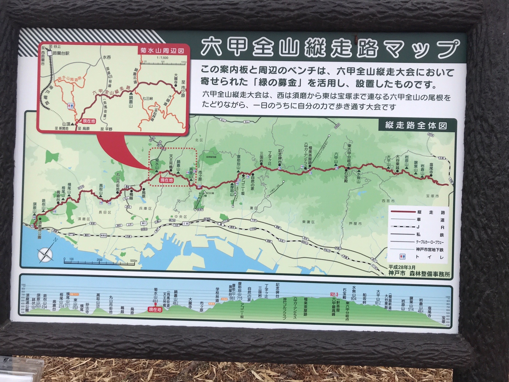 2016年 六甲全山縦走地図 市街地重点 ひらさんのhighトレッキング速報版