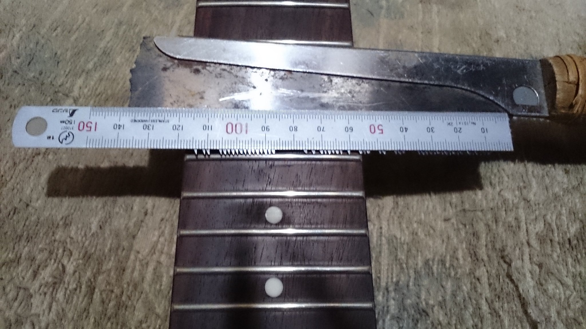 暗黒星人 しゅんせ た たかはし しゅ On Twitter スキャロップ加工を開始 私の場合まずノコギリである深さまで切り込みをいれます 約2ミリ ノコにスケールを貼ればこれ以上深くは切れません 最深部の基準になる ギター改造 カスタムギター スキャロップ